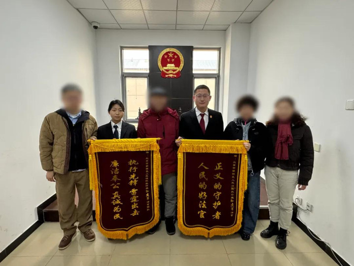 赵阿姨们对执行财产线索接转中心便捷、高效、精准的线索传递工作与孙建军法官认真、专业的执行实施工作表示高度认可,专门送来两面锦旗,一面上书“正义的守护者,人民的好法官”,一面上书“执行先锋,雷霆出击;廉洁奉公,真诚为民”。